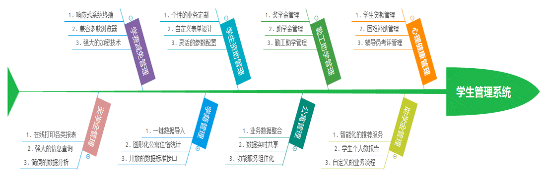 以學(xué)生、班干部、班主任(輔導(dǎo)員)、學(xué)院、學(xué)生處、學(xué)校領(lǐng)導(dǎo)等不同視角對(duì)用戶關(guān)注的信息與服務(wù)進(jìn)行有效組織。 學(xué)生用戶:資、助、勤、貸等服務(wù)的申請(qǐng);班主任、輔導(dǎo)員:日常事務(wù)的待辦審批,工作周報(bào),學(xué)生干部管理,班級(jí)學(xué)生成績(jī)變化等; 領(lǐng)導(dǎo)層面:學(xué)生數(shù)據(jù)分析(如學(xué)生信息、獎(jiǎng)懲、困難、 生源、就業(yè)率等方面)。